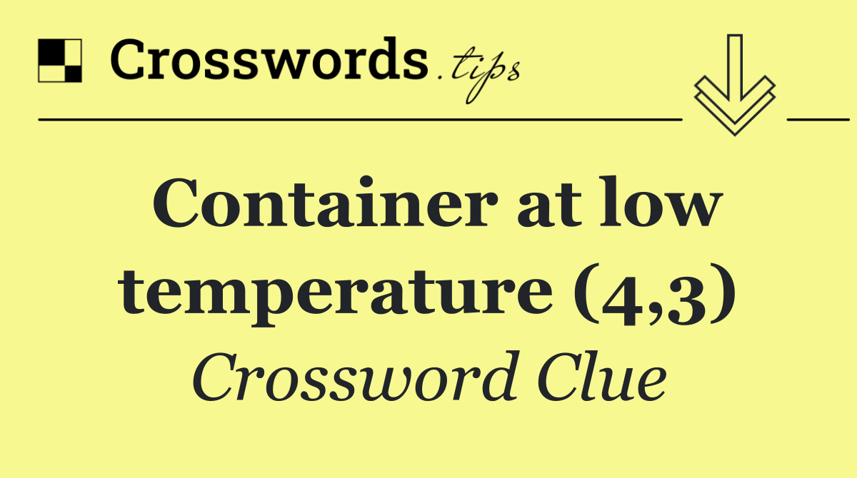 We specialize in solving many of your favorite puzzles, including the New York Times, USA Today, LA Times, Daily Themed Crosswords, and more. The "Container at low temperature (4,3)" clue from the Guardian Quick puzzle, July 11 edition, is one such example.