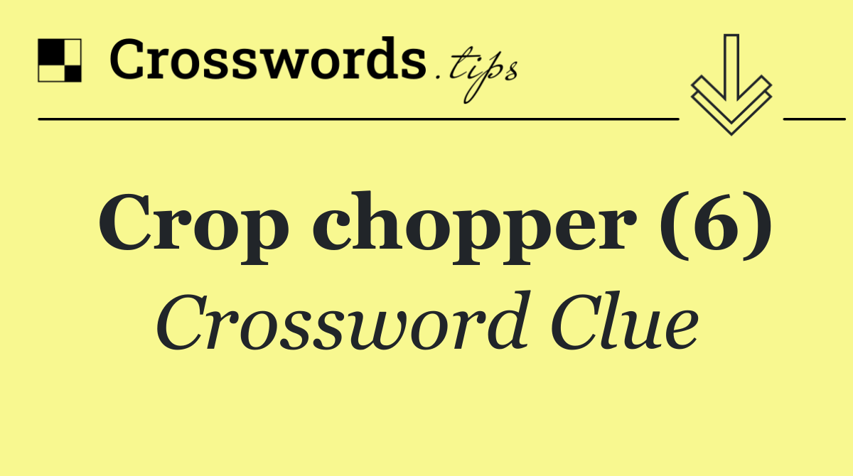 Looking for the answer to Crop chopper (6) from the The Guardian Quick puzzle? We have found the exact 6-letter solution you need. Want a challenge? Use our progressive letter reveal tool, explore helpful hints like anagrams and alternative clues, or browse other clues from today's puzzle. Ready to solve it?