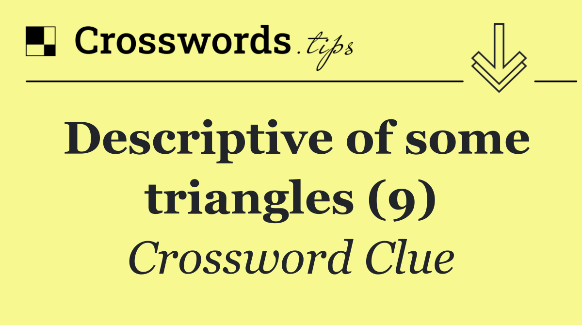 Looking for the answer to Descriptive of some triangles (9) from the The Guardian Quick puzzle? We have found the exact 9-letter solution you need. Want a challenge? Use our progressive letter reveal tool, explore helpful hints like anagrams and alternative clues, or browse other clues from today's puzzle. Ready to solve it?