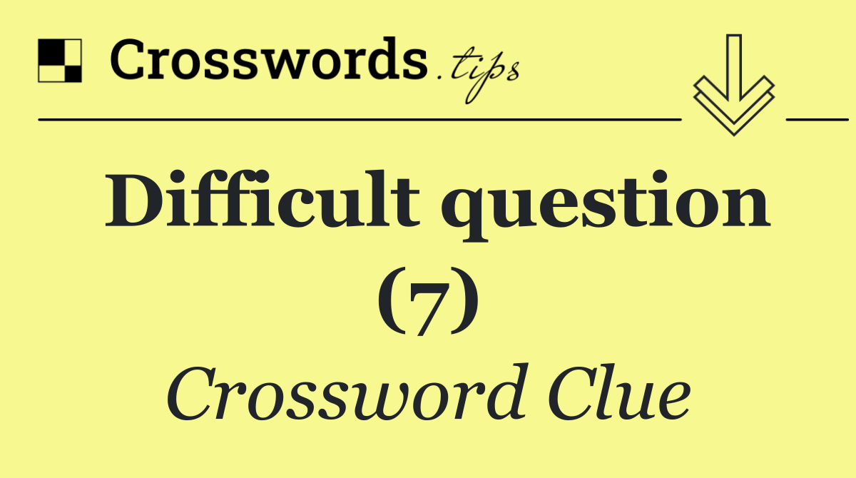 We specialize in solving many of your favorite puzzles, including the New York Times, USA Today, LA Times, Daily Themed Crosswords, and more. The "Difficult question (7)" clue from the Guardian Quick puzzle, July 12 edition, is one such example.