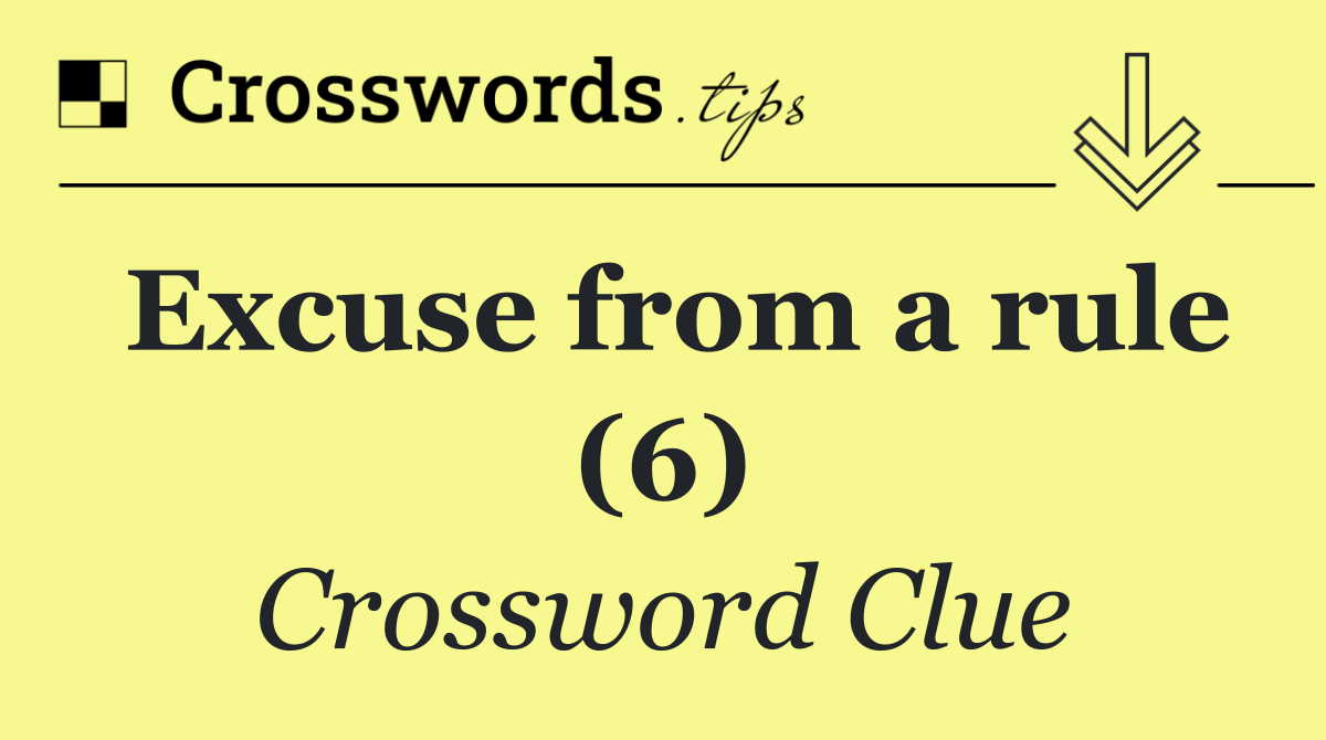 Looking for the answer to Excuse from a rule (6) from the The Guardian Quick puzzle? We have found the exact 6-letter solution you need. Want a challenge? Use our progressive letter reveal tool, explore helpful hints like anagrams and alternative clues, or browse other clues from today's puzzle. Ready to solve it?