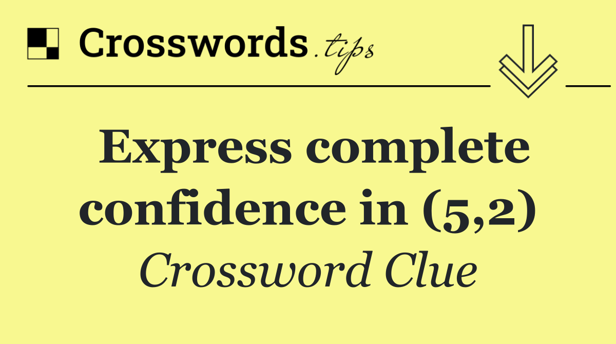 We specialize in solving many of your favorite puzzles, including the New York Times, USA Today, LA Times, Daily Themed Crosswords, and more. The "Express complete confidence in (5,2)" clue from the Guardian Quick puzzle, January 18 edition, is one such example.