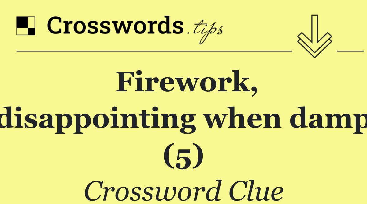 We specialize in solving many of your favorite puzzles, including the New York Times, USA Today, LA Times, Daily Themed Crosswords, and more. The "Firework, disappointing when damp (5)" clue from the Guardian Quick puzzle, January 18 edition, is one such example.