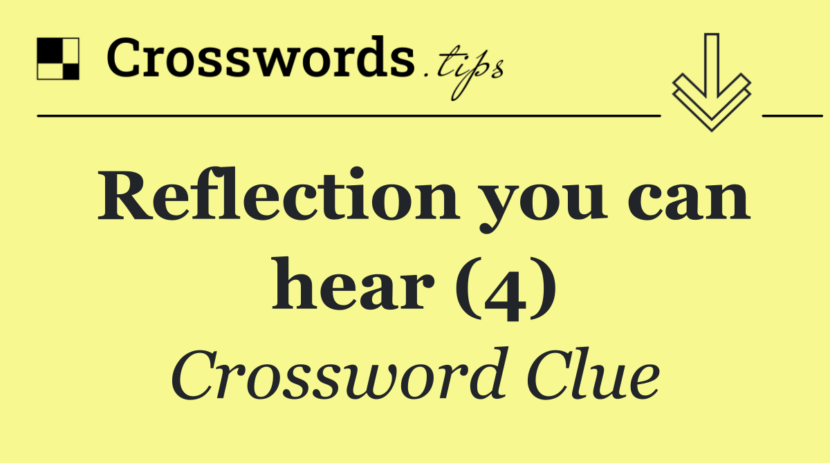 Looking for the answer to Reflection you can hear (4) from the The Guardian Quick puzzle? We have found the exact 4-letter solution you need. Want a challenge? Use our progressive letter reveal tool, explore helpful hints like anagrams and alternative clues, or browse other clues from today's puzzle. Ready to solve it?