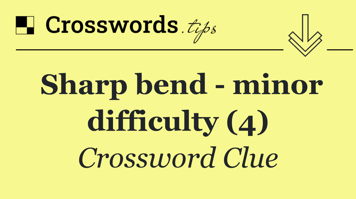 Looking for the answer to Sharp bend minor difficulty (4) from the The Guardian Quick puzzle? We have found the exact 4-letter solution you need. Want a challenge? Use our progressive letter reveal tool, explore helpful hints like anagrams and alternative clues, or browse other clues from today's puzzle. Ready to solve it?