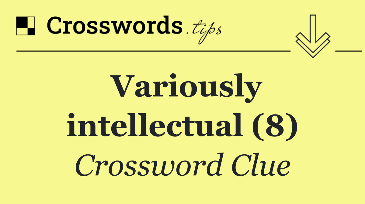 Looking for the answer to Variously intellectual (8) from the The Guardian Quick puzzle? We have found the exact 8-letter solution you need. Want a challenge? Use our progressive letter reveal tool, explore helpful hints like anagrams and alternative clues, or browse other clues from today's puzzle. Ready to solve it?
