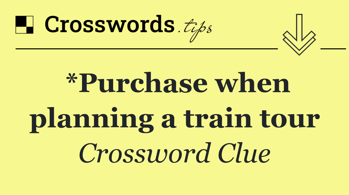 Looking for the answer to *Purchase when planning a train tour from the LA Times Daily puzzle? We have found the exact 8-letter solution you need. Want a challenge? Use our progressive letter reveal tool, explore helpful hints like anagrams and alternative clues, or browse other clues from today's puzzle. Ready to solve it?