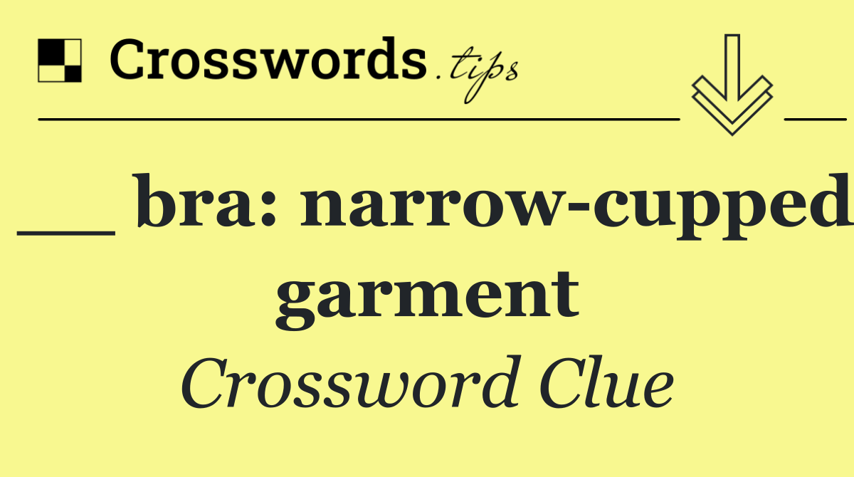 Looking for the answer to __ bra: narrow cupped garment from the LA Times Daily puzzle? We have found the exact 4-letter solution you need. Want a challenge? Use our progressive letter reveal tool, explore helpful hints like anagrams and alternative clues, or browse other clues from today's puzzle. Ready to solve it?