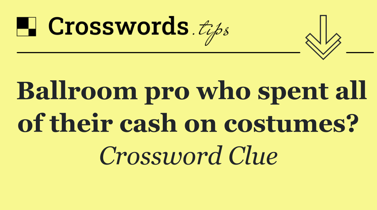 Looking for the answer to Ballroom pro who spent all of their cash on costumes? from the LA Times Daily puzzle? We have found the exact 11-letter solution you need. Want a challenge? Use our progressive letter reveal tool, explore helpful hints like anagrams and alternative clues, or browse other clues from today's puzzle. Ready to solve it?