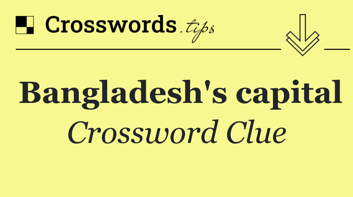 We specialize in solving many of your favorite puzzles, including the New York Times, USA Today, LA Times, Daily Themed Crosswords, and more. The "Bangladesh's capital" clue from the LA Times Daily puzzle, April 04 edition, is one such example.