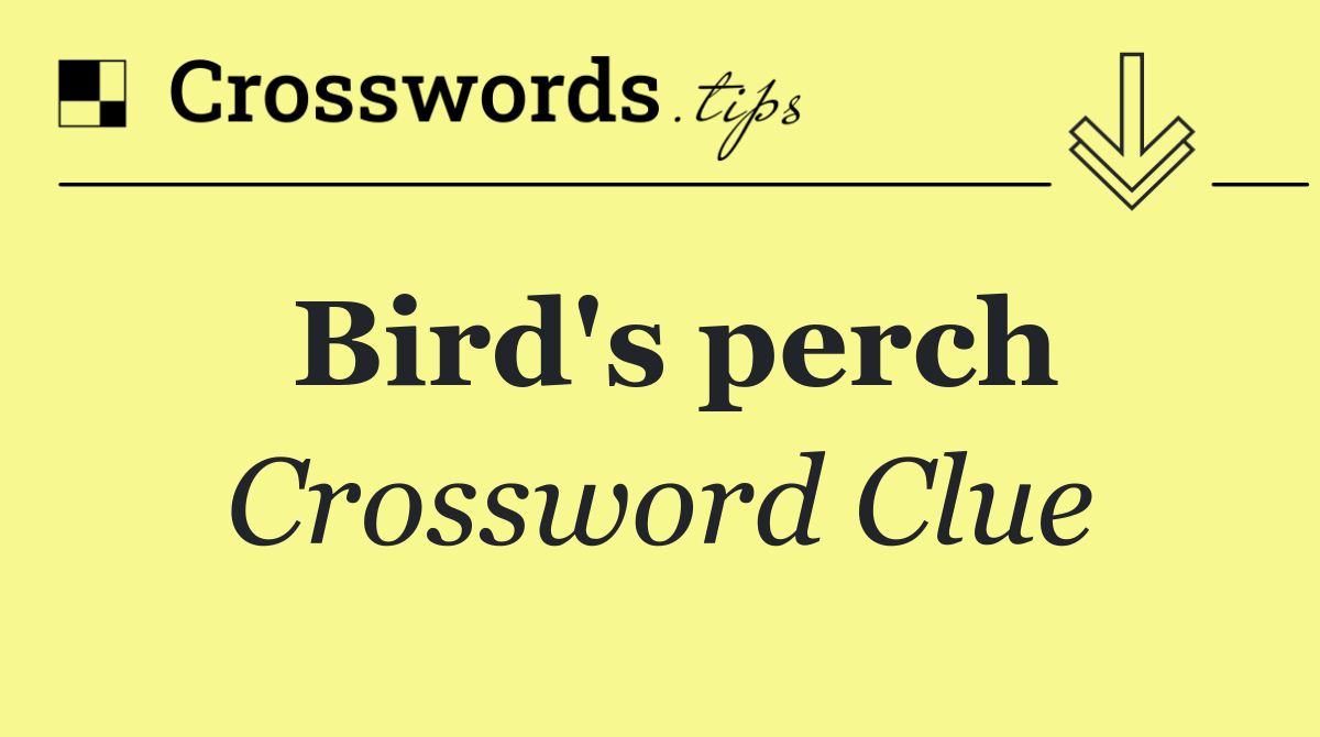 Looking for the answer to Bird's perch from the LA Times Daily puzzle? We have found the exact 5-letter solution you need. Want a challenge? Use our progressive letter reveal tool, explore helpful hints like anagrams and alternative clues, or browse other clues from today's puzzle. Ready to solve it?