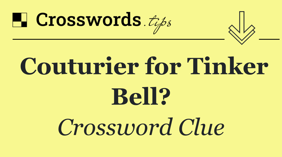 Looking for the answer to Couturier for Tinker Bell? from the LA Times Daily puzzle? We have found the exact 11-letter solution you need. Want a challenge? Use our progressive letter reveal tool, explore helpful hints like anagrams and alternative clues, or browse other clues from today's puzzle. Ready to solve it?