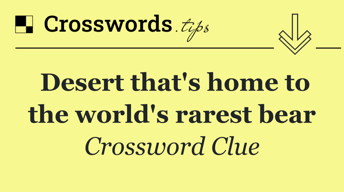 Looking for the answer to Desert that's home to the world's rarest bear from the LA Times Daily puzzle? We have found the exact 4-letter solution you need. Want a challenge? Use our progressive letter reveal tool, explore helpful hints like anagrams and alternative clues, or browse other clues from today's puzzle. Ready to solve it?