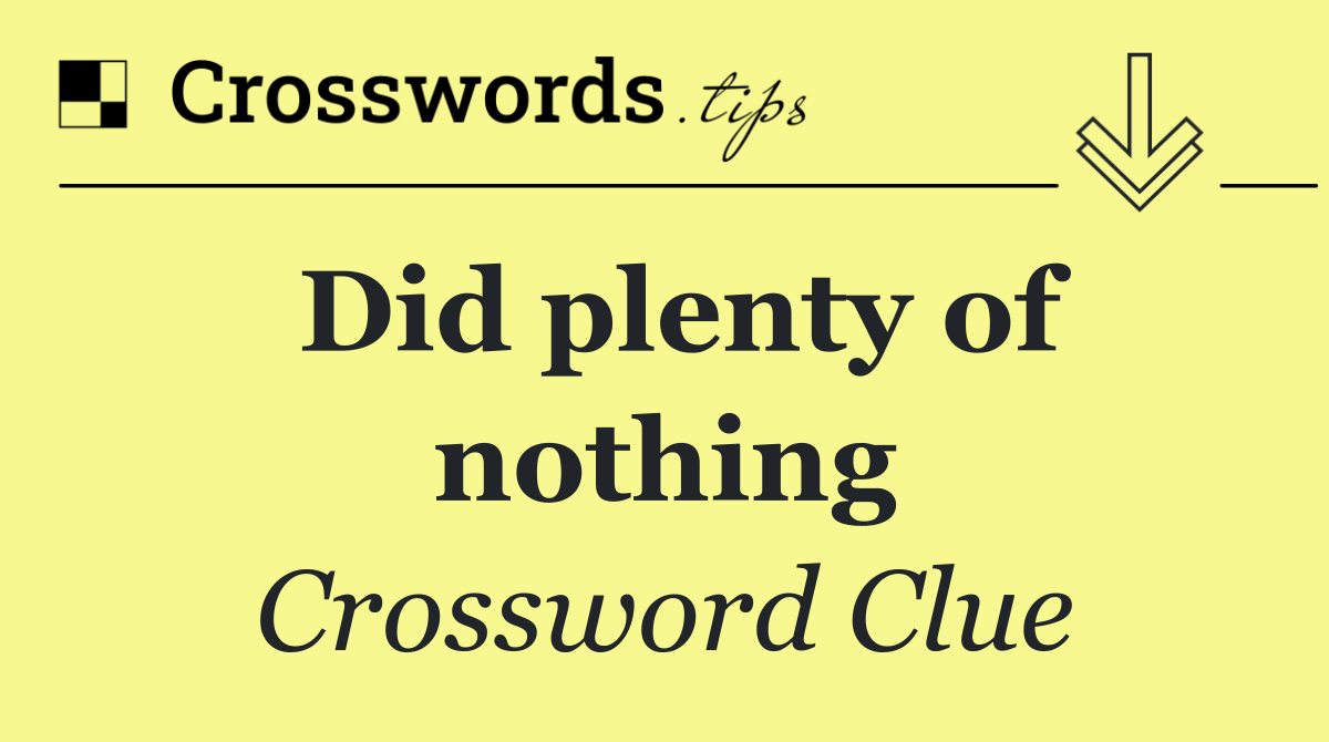 Looking for the answer to Did plenty of nothing from the LA Times Daily puzzle? We have found the exact 5-letter solution you need. Want a challenge? Use our progressive letter reveal tool, explore helpful hints like anagrams and alternative clues, or browse other clues from today's puzzle. Ready to solve it?