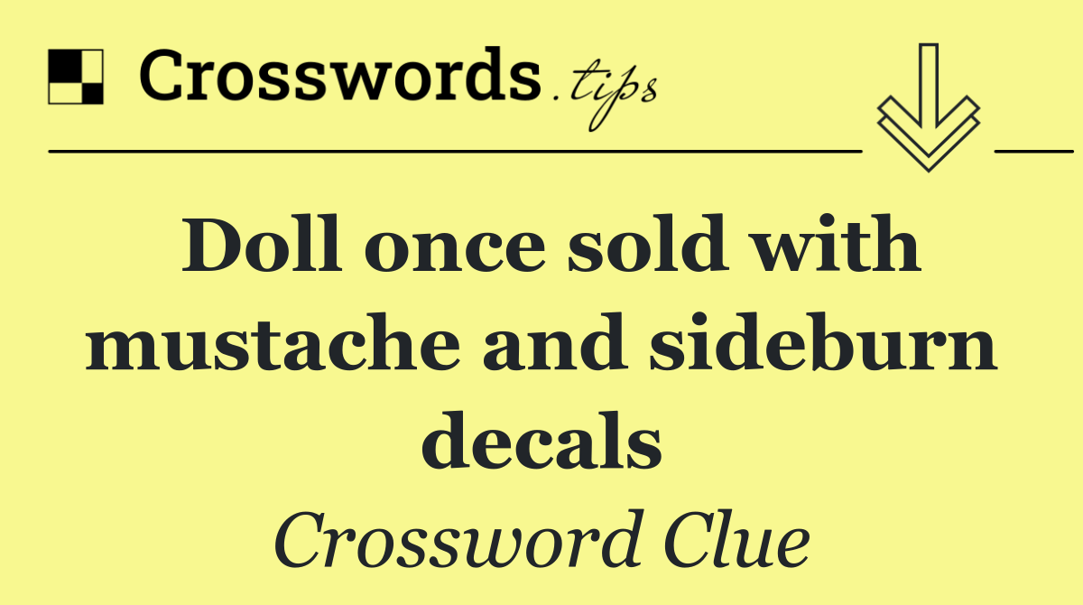 Looking for the answer to Doll once sold with mustache and sideburn decals from the LA Times Daily puzzle? We have found the exact 3-letter solution you need. Want a challenge? Use our progressive letter reveal tool, explore helpful hints like anagrams and alternative clues, or browse other clues from today's puzzle. Ready to solve it?