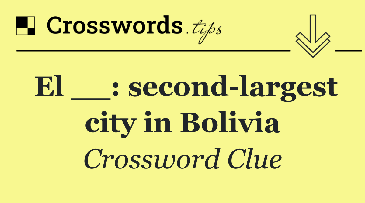 Looking for the answer to El __: second largest city in Bolivia from the LA Times Daily puzzle? We have found the exact 4-letter solution you need. Want a challenge? Use our progressive letter reveal tool, explore helpful hints like anagrams and alternative clues, or browse other clues from today's puzzle. Ready to solve it?