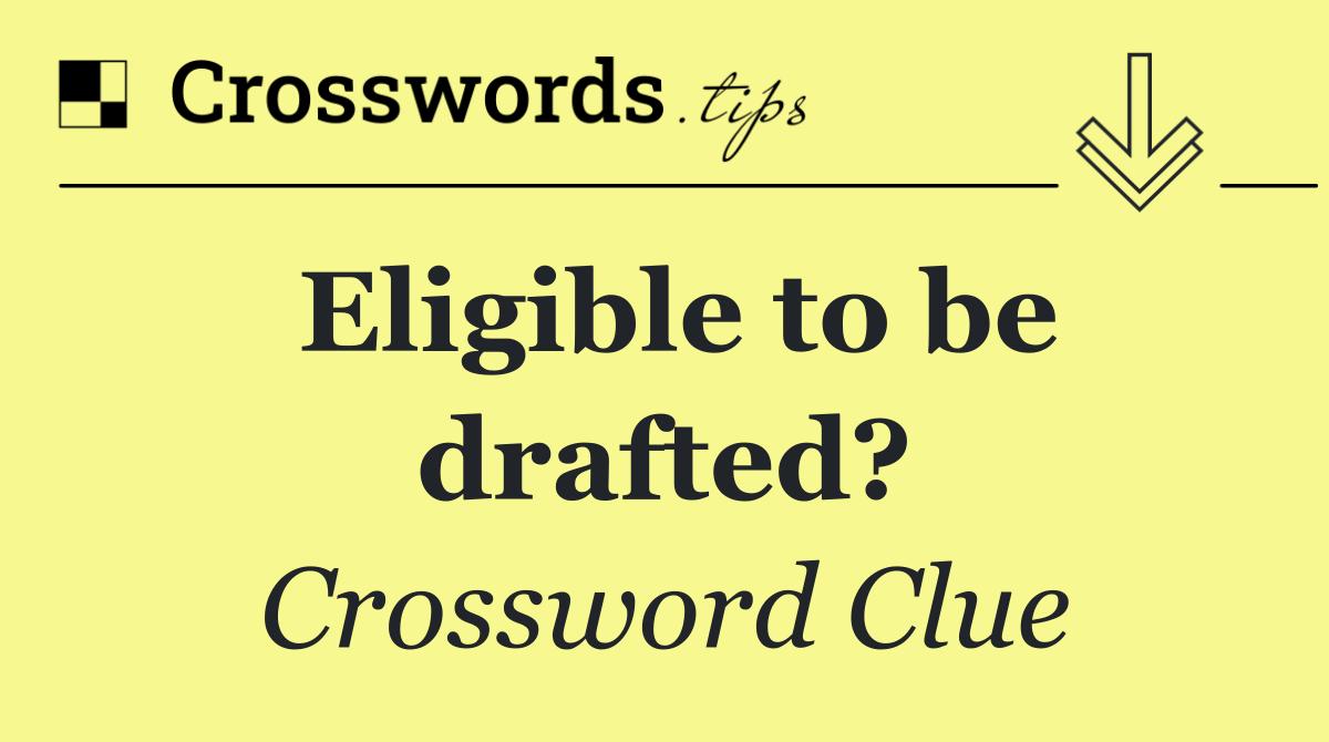 We specialize in solving many of your favorite puzzles, including the New York Times, USA Today, LA Times, Daily Themed Crosswords, and more. The "Eligible to be drafted?" clue from the LA Times Daily puzzle, May 10 edition, is one such example.