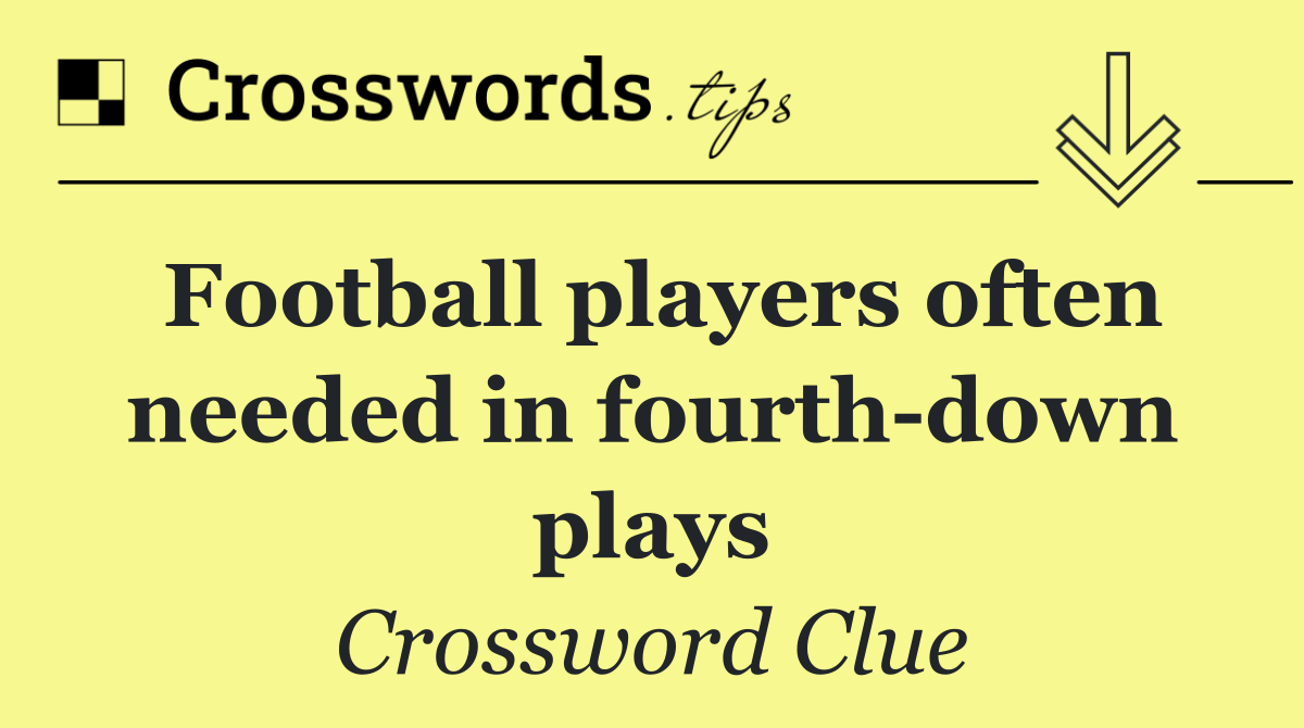 Looking for the answer to Football players often needed in fourth down plays from the LA Times Daily puzzle? We have found the exact 7-letter solution you need. Want a challenge? Use our progressive letter reveal tool, explore helpful hints like anagrams and alternative clues, or browse other clues from today's puzzle. Ready to solve it?