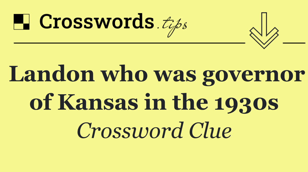 Looking for the answer to Landon who was governor of Kansas in the 1930s from the LA Times Daily puzzle? We have found the exact 3-letter solution you need. Want a challenge? Use our progressive letter reveal tool, explore helpful hints like anagrams and alternative clues, or browse other clues from today's puzzle. Ready to solve it?