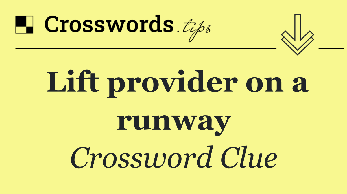 Looking for the answer to Lift provider on a runway from the LA Times Daily puzzle? We have found the exact 8-letter solution you need. Want a challenge? Use our progressive letter reveal tool, explore helpful hints like anagrams and alternative clues, or browse other clues from today's puzzle. Ready to solve it?