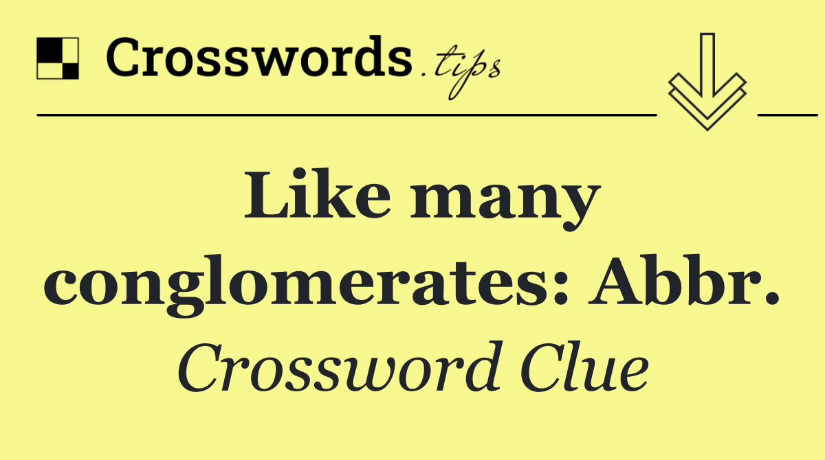 Looking for the answer to Like many conglomerates: Abbr. from the LA Times Daily puzzle? We have found the exact 4-letter solution you need. Want a challenge? Use our progressive letter reveal tool, explore helpful hints like anagrams and alternative clues, or browse other clues from today's puzzle. Ready to solve it?