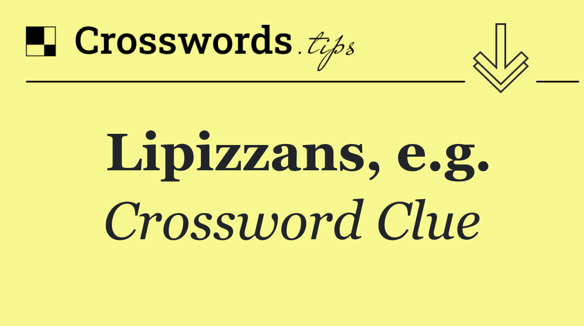 Looking for the answer to Lipizzans, e.g. from the LA Times Daily puzzle? We have found the exact 6-letter solution you need. Want a challenge? Use our progressive letter reveal tool, explore helpful hints like anagrams and alternative clues, or browse other clues from today's puzzle. Ready to solve it?