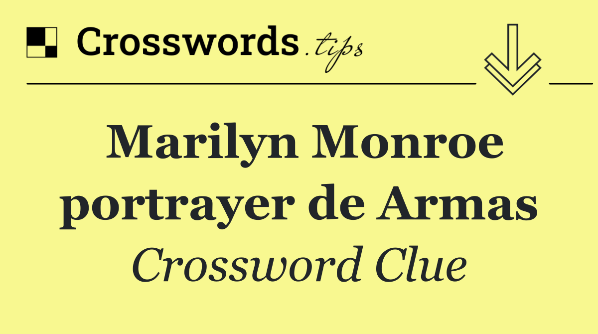 Looking for the answer to Marilyn Monroe portrayer de Armas from the LA Times Daily puzzle? We have found the exact 3-letter solution you need. Want a challenge? Use our progressive letter reveal tool, explore helpful hints like anagrams and alternative clues, or browse other clues from today's puzzle. Ready to solve it?
