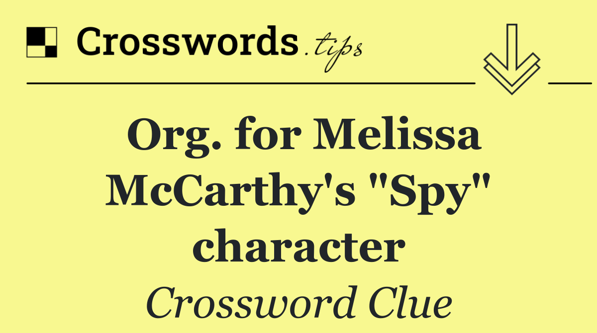 Looking for the answer to Org. for Melissa McCarthy's "Spy" character from the LA Times Daily puzzle? We have found the exact 3-letter solution you need. Want a challenge? Use our progressive letter reveal tool, explore helpful hints like anagrams and alternative clues, or browse other clues from today's puzzle. Ready to solve it?