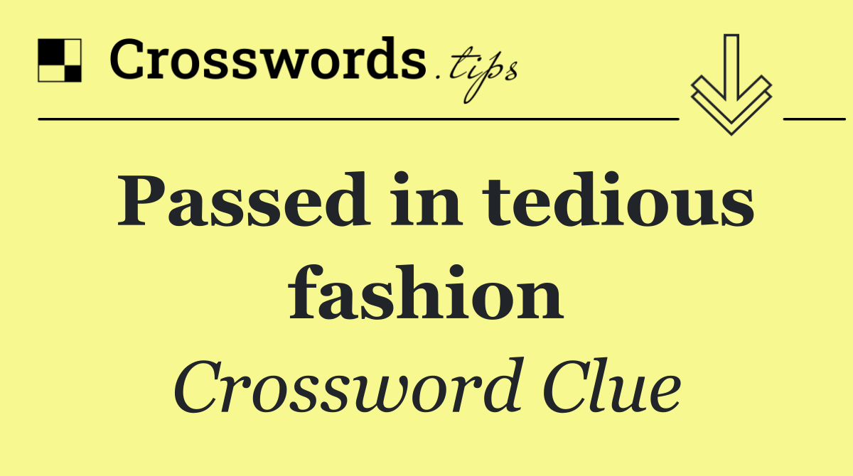 Looking for the answer to Passed in tedious fashion from the LA Times Daily puzzle? We have found the exact 6-letter solution you need. Want a challenge? Use our progressive letter reveal tool, explore helpful hints like anagrams and alternative clues, or browse other clues from today's puzzle. Ready to solve it?