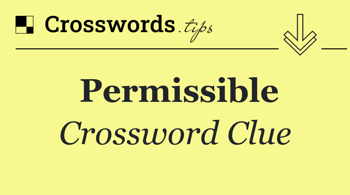 Looking for the answer to Permissible from the LA Times Daily puzzle? We have found the exact 5-letter solution you need. Want a challenge? Use our progressive letter reveal tool, explore helpful hints like anagrams and alternative clues, or browse other clues from today's puzzle. Ready to solve it?