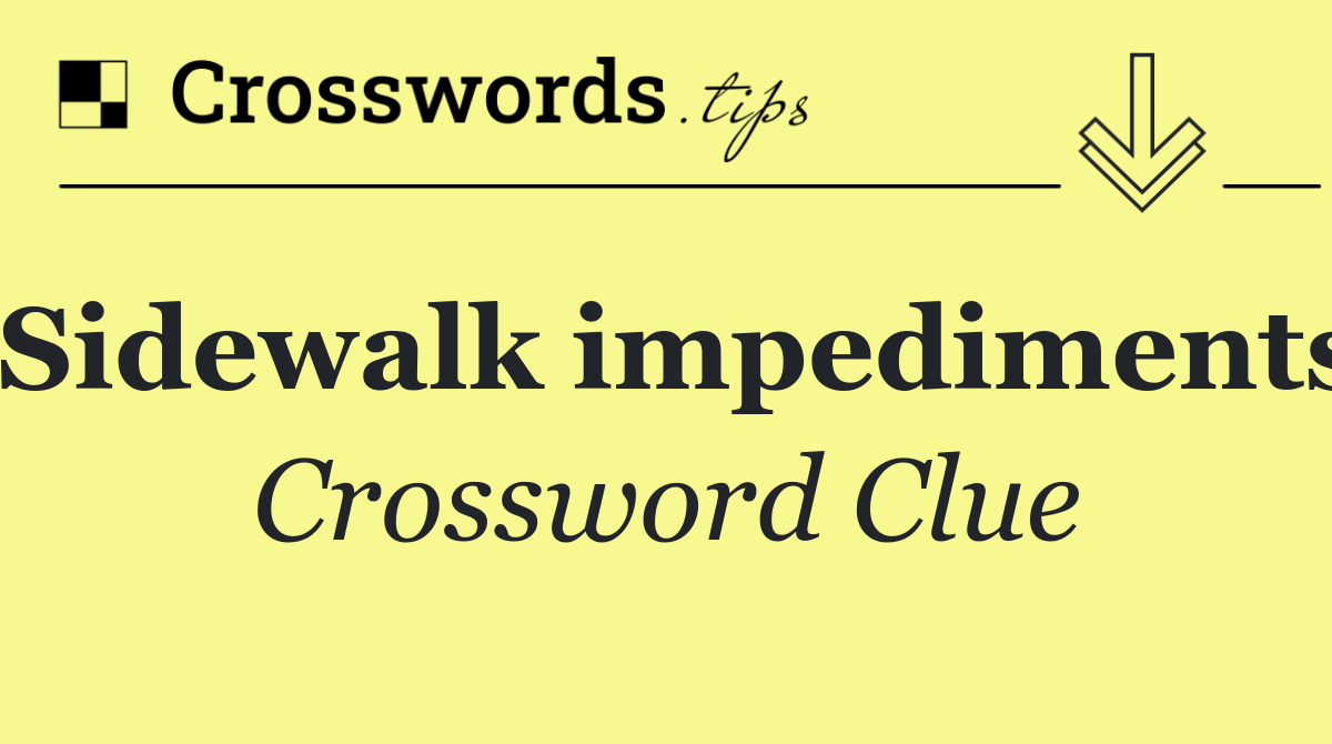 Looking for the answer to Sidewalk impediments from the LA Times Daily puzzle? We have found the exact 9-letter solution you need. Want a challenge? Use our progressive letter reveal tool, explore helpful hints like anagrams and alternative clues, or browse other clues from today's puzzle. Ready to solve it?