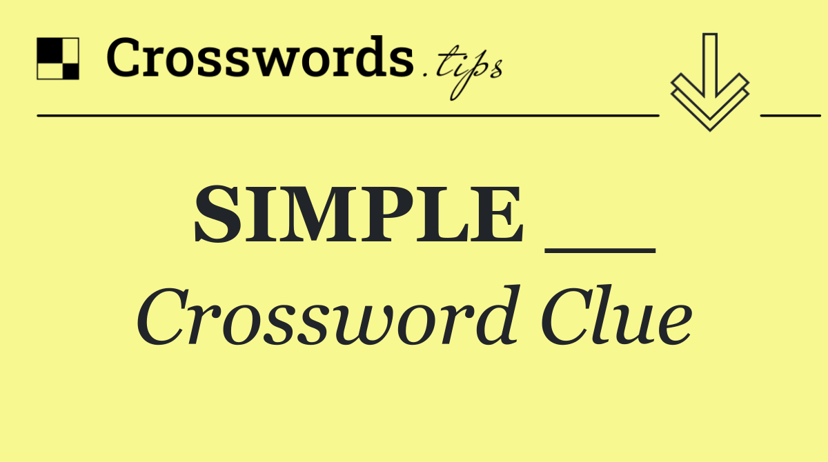 Looking for the answer to SIMPLE __ from the LA Times Daily puzzle? We have found the exact 3-letter solution you need. Want a challenge? Use our progressive letter reveal tool, explore helpful hints like anagrams and alternative clues, or browse other clues from today's puzzle. Ready to solve it?