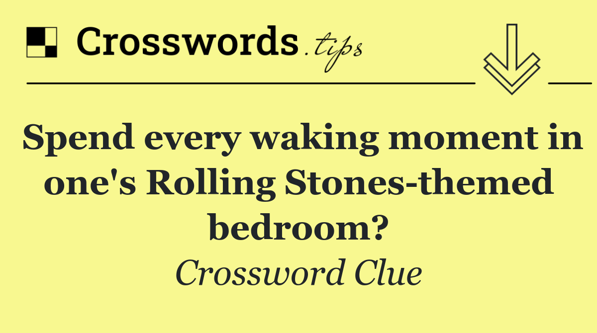 Looking for the answer to Spend every waking moment in one's Rolling Stones themed bedroom? from the LA Times Daily puzzle? We have found the exact 20-letter solution you need. Want a challenge? Use our progressive letter reveal tool, explore helpful hints like anagrams and alternative clues, or browse other clues from today's puzzle. Ready to solve it?