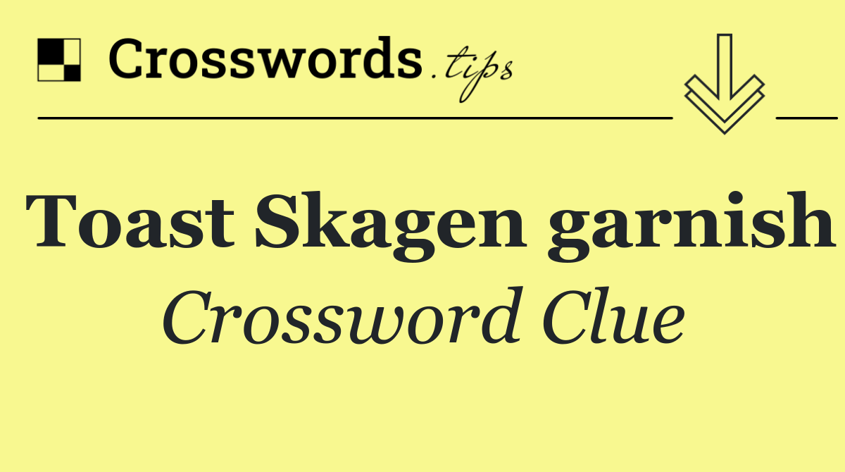 Looking for the answer to Toast Skagen garnish from the LA Times Daily puzzle? We have found the exact 3-letter solution you need. Want a challenge? Use our progressive letter reveal tool, explore helpful hints like anagrams and alternative clues, or browse other clues from today's puzzle. Ready to solve it?