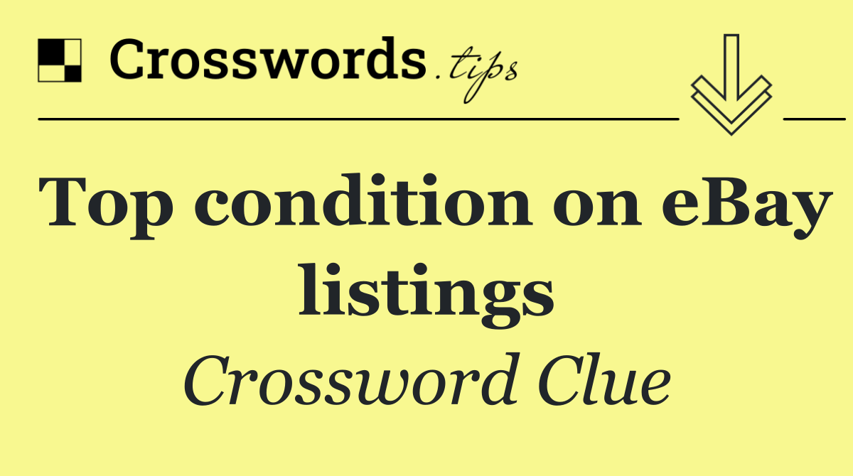 Looking for the answer to Top condition on eBay listings from the LA Times Daily puzzle? We have found the exact 3-letter solution you need. Want a challenge? Use our progressive letter reveal tool, explore helpful hints like anagrams and alternative clues, or browse other clues from today's puzzle. Ready to solve it?
