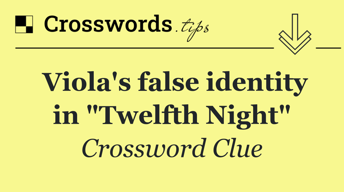 We specialize in solving many of your favorite puzzles, including the New York Times, USA Today, LA Times, Daily Themed Crosswords, and more. The "Viola's false identity in "Twelfth Night"" clue from the LA Times Daily puzzle, May 18 edition, is one such example.