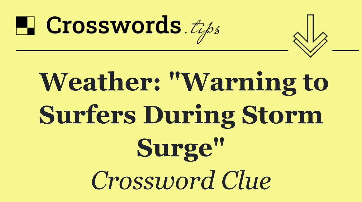 We specialize in solving many of your favorite puzzles, including the New York Times, USA Today, LA Times, Daily Themed Crosswords, and more. The "Weather: "Warning to Surfers During Storm Surge"" clue from the LA Times Daily puzzle, June 29 edition, is one such example.