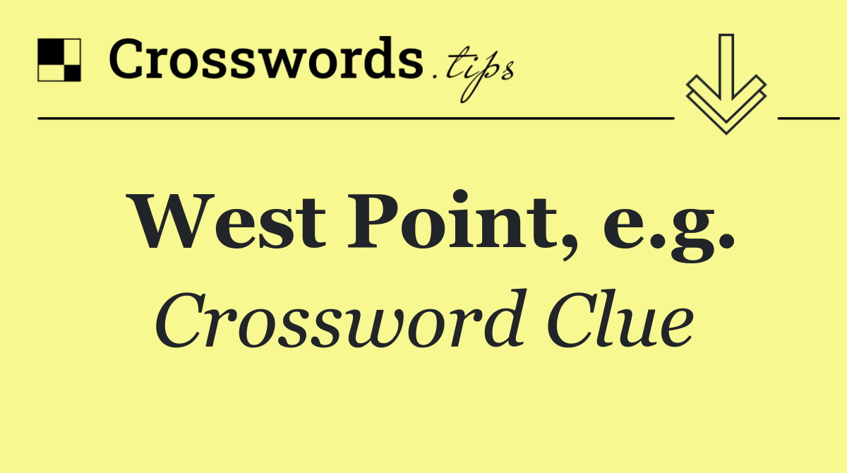 Looking for the answer to West Point, e.g. from the LA Times Daily puzzle? We have found the exact 7-letter solution you need. Want a challenge? Use our progressive letter reveal tool, explore helpful hints like anagrams and alternative clues, or browse other clues from today's puzzle. Ready to solve it?
