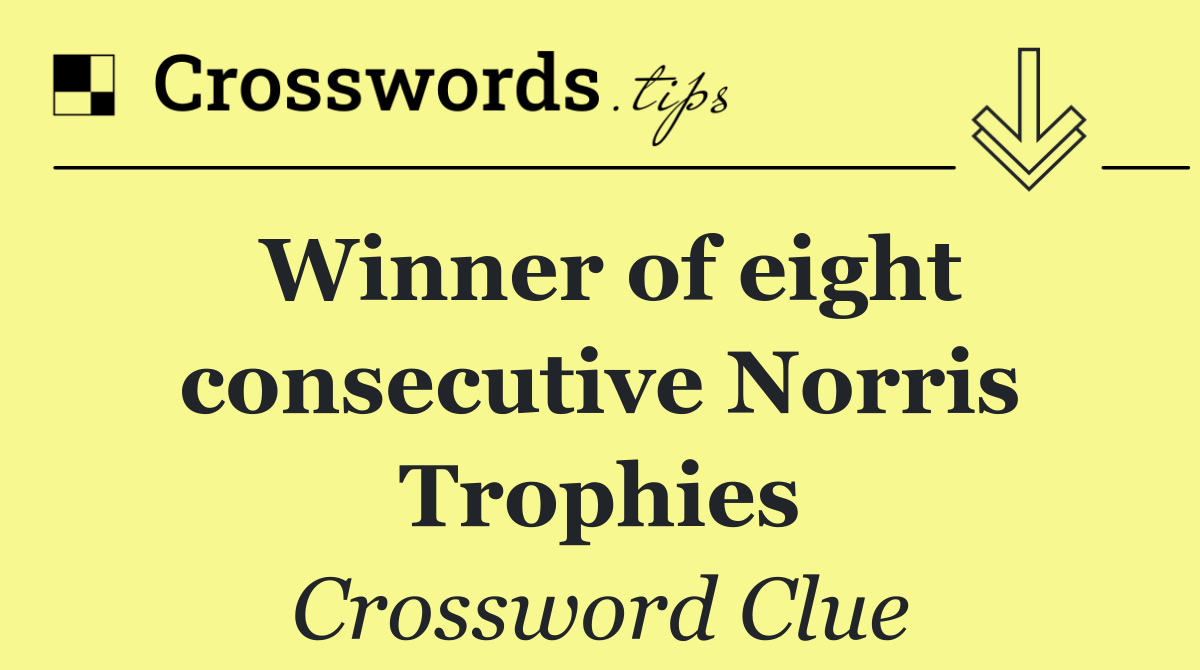 Looking for the answer to Winner of eight consecutive Norris Trophies from the LA Times Daily puzzle? We have found the exact 3-letter solution you need. Want a challenge? Use our progressive letter reveal tool, explore helpful hints like anagrams and alternative clues, or browse other clues from today's puzzle. Ready to solve it?