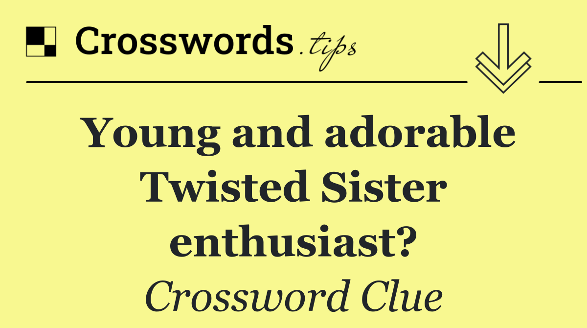 Looking for the answer to Young and adorable Twisted Sister enthusiast? from the LA Times Daily puzzle? We have found the exact 17-letter solution you need. Want a challenge? Use our progressive letter reveal tool, explore helpful hints like anagrams and alternative clues, or browse other clues from today's puzzle. Ready to solve it?