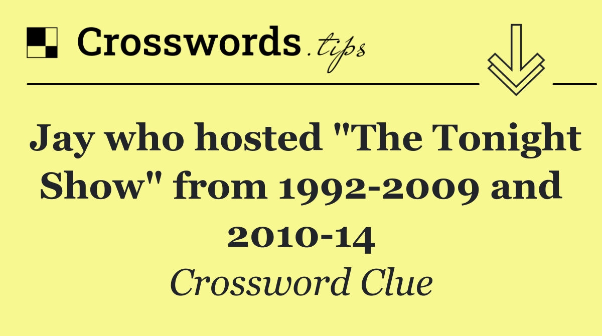 Looking for the answer to Jay who hosted "The Tonight Show" from 1992 2009 and 2010 14 from the New York Times Mini puzzle? We have found the exact 4-letter solution you need. Want a challenge? Use our progressive letter reveal tool, explore helpful hints like anagrams and alternative clues, or browse other clues from today's puzzle. Ready to solve it?