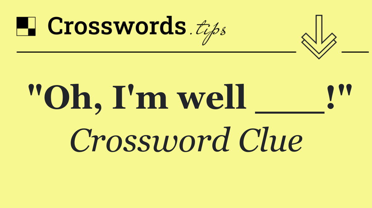 We specialize in solving many of your favorite puzzles, including the New York Times, USA Today, LA Times, Daily Themed Crosswords, and more. The ""Oh, I'm well ___!"" clue from the New York Times Mini puzzle, June 17 edition, is one such example.