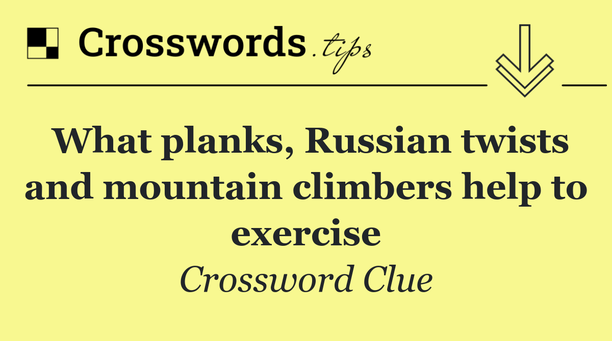 Looking for the answer to What planks, Russian twists and mountain climbers help to exercise from the New York Times Mini puzzle? We have found the exact 4-letter solution you need. Want a challenge? Use our progressive letter reveal tool, explore helpful hints like anagrams and alternative clues, or browse other clues from today's puzzle. Ready to solve it?
