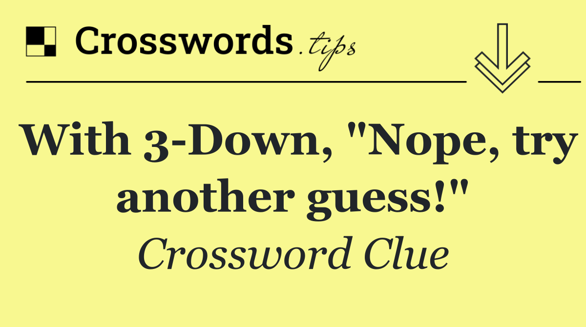 Looking for the answer to With 3 Down, "Nope, try another guess!" from the New York Times Mini puzzle? We have found the exact 5-letter solution you need. Want a challenge? Use our progressive letter reveal tool, explore helpful hints like anagrams and alternative clues, or browse other clues from today's puzzle. Ready to solve it?