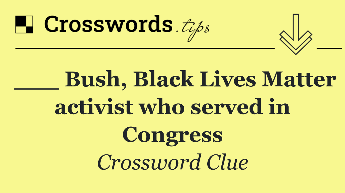Looking for the answer to ___ Bush, Black Lives Matter activist who served in Congress from the New York Times puzzle? We have found the exact 4-letter solution you need. Want a challenge? Use our progressive letter reveal tool, explore helpful hints like anagrams and alternative clues, or browse other clues from today's puzzle. Ready to solve it?