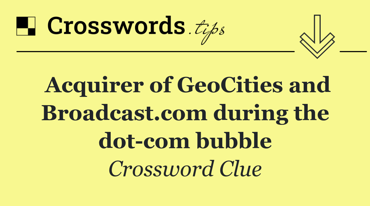 We specialize in solving many of your favorite puzzles, including the New York Times, USA Today, LA Times, Daily Themed Crosswords, and more. The "Acquirer of GeoCities and Broadcast.com during the dot com bubble" clue from the New York Times puzzle, July 11 edition, is one such example.