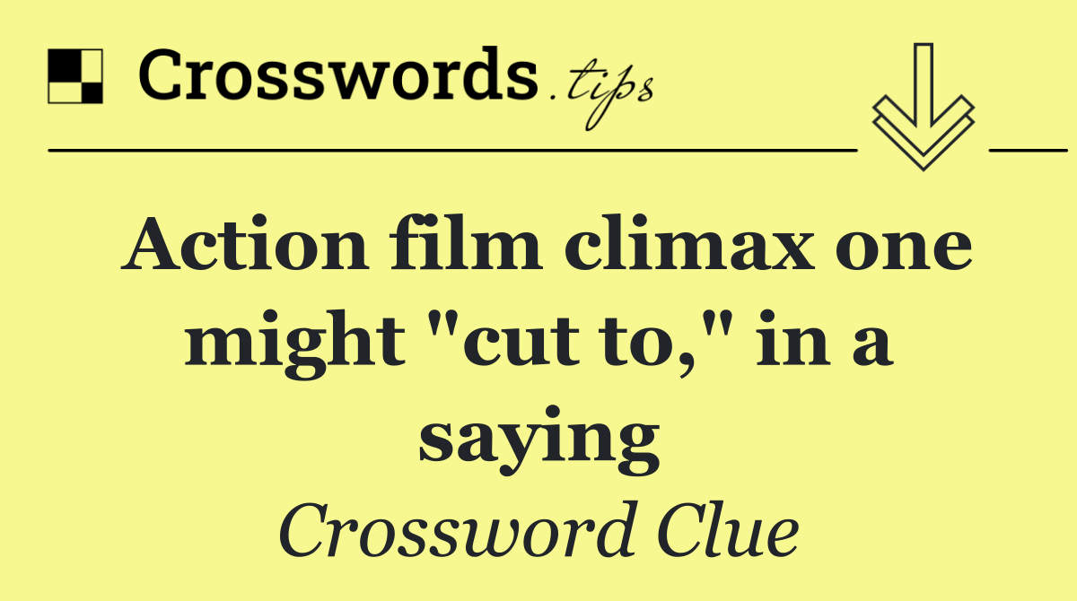 Looking for the answer to Action film climax one might "cut to," in a saying from the New York Times puzzle? We have found the exact 8-letter solution you need. Want a challenge? Use our progressive letter reveal tool, explore helpful hints like anagrams and alternative clues, or browse other clues from today's puzzle. Ready to solve it?