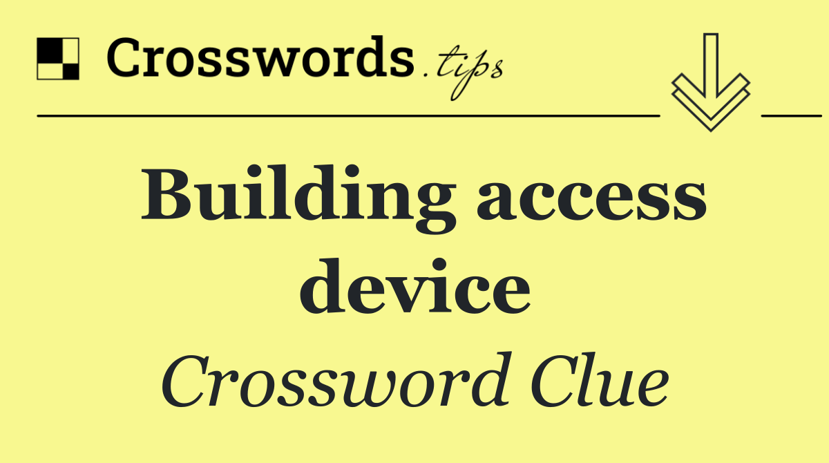 Looking for the answer to Building access device from the New York Times puzzle? We have found the exact 3-letter solution you need. Want a challenge? Use our progressive letter reveal tool, explore helpful hints like anagrams and alternative clues, or browse other clues from today's puzzle. Ready to solve it?