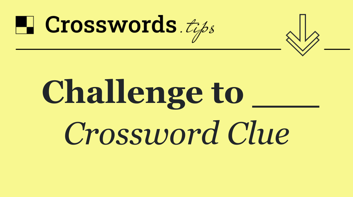Looking for the answer to Challenge to ___ from the New York Times puzzle? We have found the exact 5-letter solution you need. Want a challenge? Use our progressive letter reveal tool, explore helpful hints like anagrams and alternative clues, or browse other clues from today's puzzle. Ready to solve it?