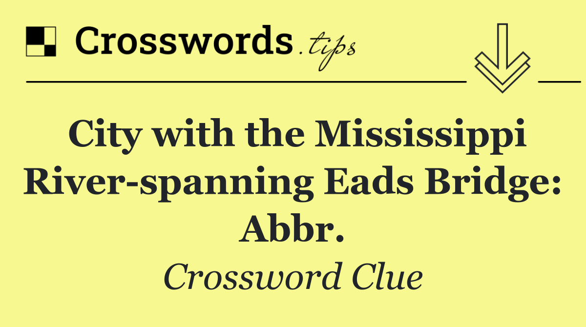 Looking for the answer to City with the Mississippi River spanning Eads Bridge: Abbr. from the New York Times puzzle? We have found the exact 3-letter solution you need. Want a challenge? Use our progressive letter reveal tool, explore helpful hints like anagrams and alternative clues, or browse other clues from today's puzzle. Ready to solve it?